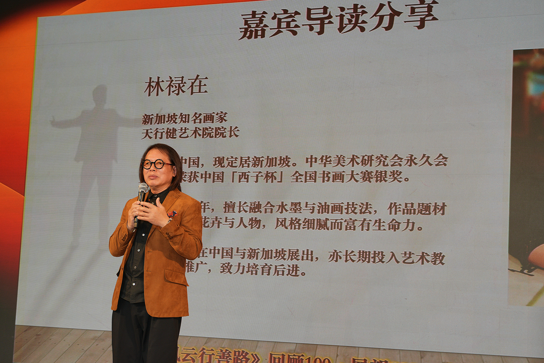 林禄在先生讲述了与洪振群的合作结缘故事,二人将接地气的照片与绘画融合,打造出浑然一体的独特作品,精选60幅拍卖所得近160万新币全部用于公益。他直言洪振群的利他精神与说到做到的品格令人敬佩,称赞其为新加坡人的骄傲。朱志伟、管雪梅、庞琳等十余位各界嘉宾,也从不同视角分享了与洪振群的相识点滴。朱志伟称其为“背着书的行善者”,将“行善路”从名词变为动词;管雪梅感慨其十余年来默默投身慈善,盛赞其“坚持”的品格影响无数年轻学子;庞琳直言洪振群践行“菩萨道”,走进校园的分享或许一句话就能影响孩子一生,善举意义深远。