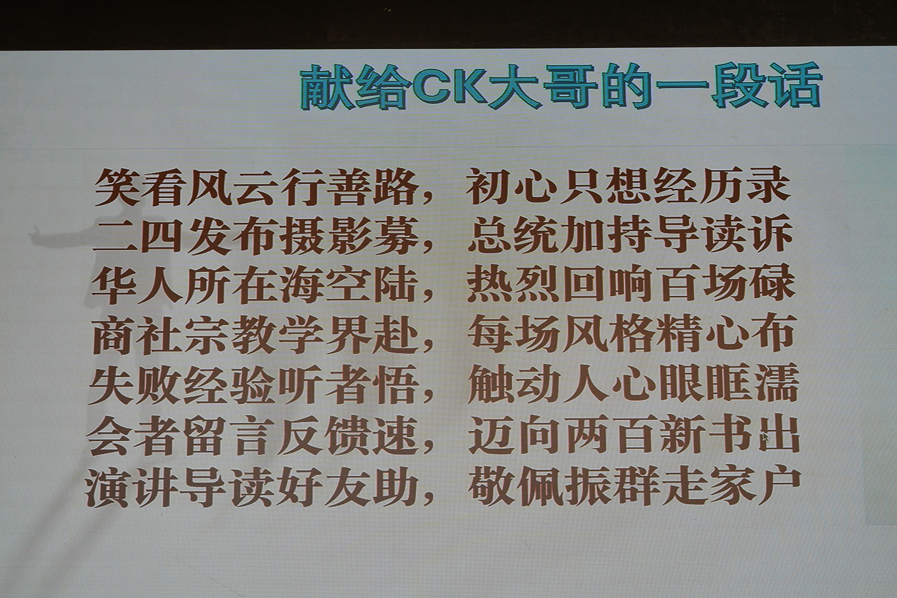 庆典最后,现场播放了200场导读会展望影片,全场嘉宾共同拍摄大合照,这一珍贵画面有望收录进洪振群的第二本著作。据悉,他计划将导读会旅程记录于新书,让更多人感受行善的力量。